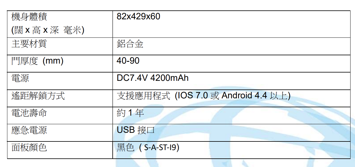 S-A-ST-I9 智能門鎖支援多種解鎖方式,人臉識別、指紋、密碼、智能卡、機械鑰匙、智能手機 APP 等等。透過虛位密碼及防試開功能加強密碼保安。同時具備警報功能,在低電量或被撬時發出警報。只需輕觸,便可發出門鈴聲。採用國際機械鎖體,可兼容市場上 99% 的鎖體。